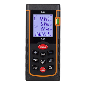 Лазерная рулетка RGK D60 позволяет измерять расстояния от нескольких сантиметров до 60 метров при точности в 1,5 мм. При этом прибор определяет не только длину и ширину, но и высоту, и даже глубину ниш, недоступные обычной рулетке. В отличие от последней, процесс измерения с помощью RGK D60 займет всего пару секунд – просто нажмите на кнопку, и вы получите точное расстояние до требуемой поверхности.